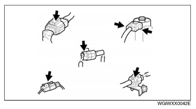 - Inspect the terminals of waterproof connectors from the connector side since they cannot be accessed from the wiring harness side.