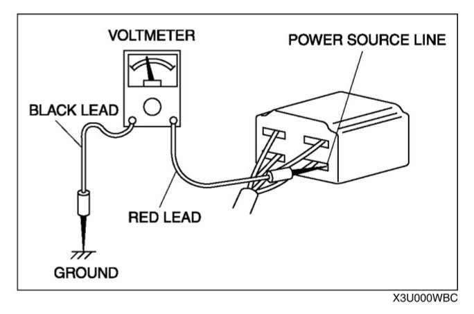 CAUTION: Do not connect a jumper wire from the power source line to a body ground. This may cause burning or other damage to wiring harnesses or electronic components.