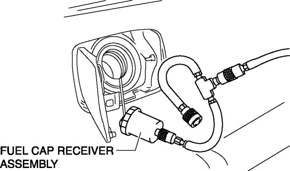 3. Connect the fuel cap receiver assembly (part of SST) to the manifold assembly and fuel-filler cap from the vehicle.