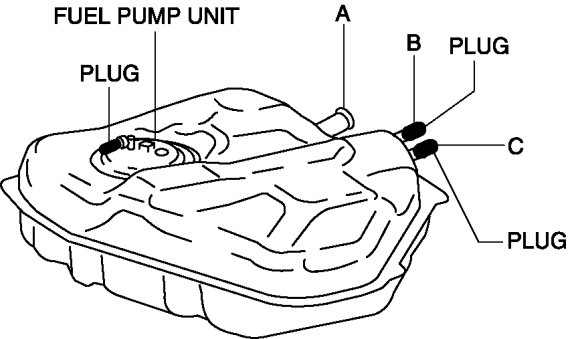 a. Plug the fuel pump unit pipe, ports B and C.