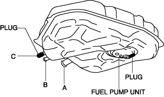 6. Plug the fuel pump unit pipe and port C.