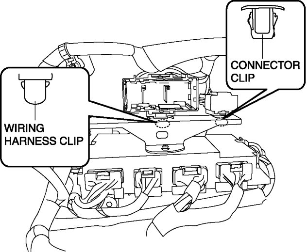 5. Remove the wiring harness clip and connector clip shown in the figure.