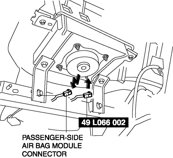 3. Connect the SST (Adapter harness) to the passenger-side air bag module as shown in the figure.