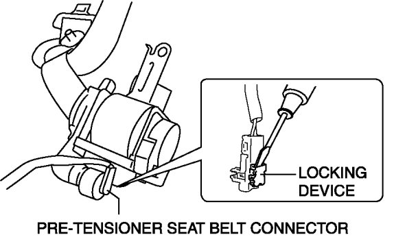 10. Disconnect the pre-tensioner seat belt connector.
