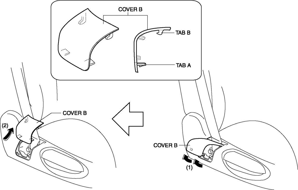 2. Pull the cover B in the direction shown in the figure (2) and remove it.