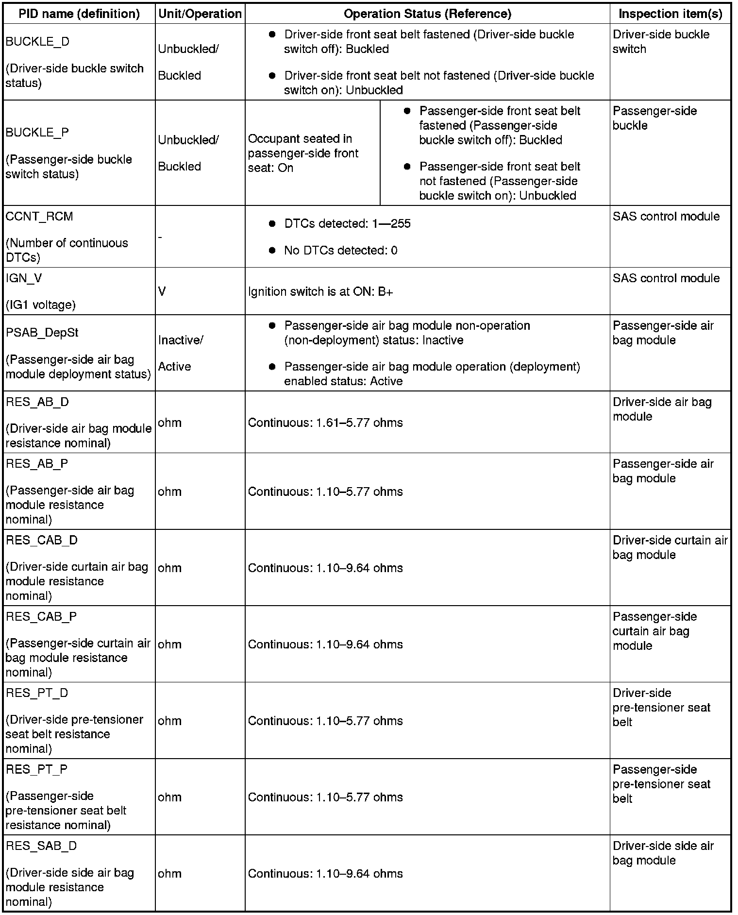 PID/DATA MONITOR TABLE [STANDARD DEPLOYMENT CONTROL SYSTEM]