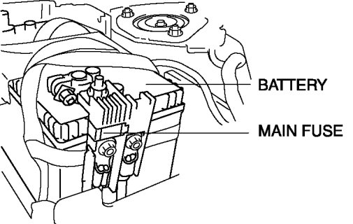 - Be sure the negative battery terminal is disconnected before replacing a main fuse.