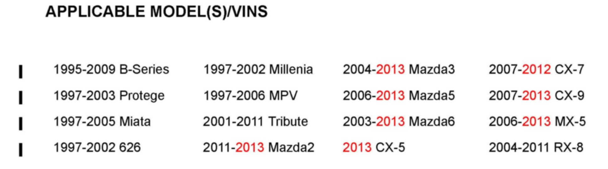 APPLICABLE MODEL(S)/VINS