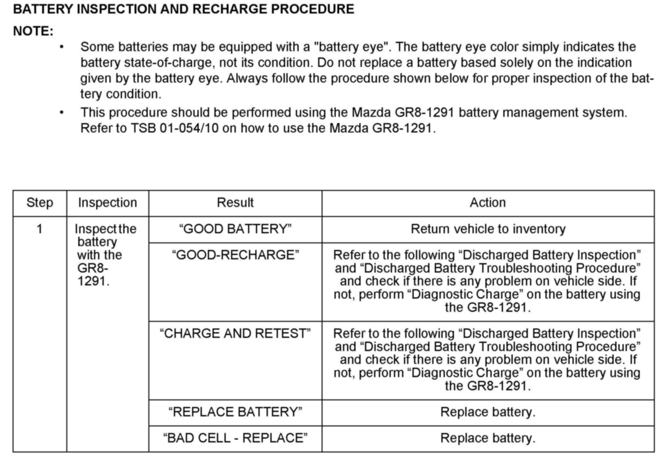 DISCHARGED BATTERY INSPECTION