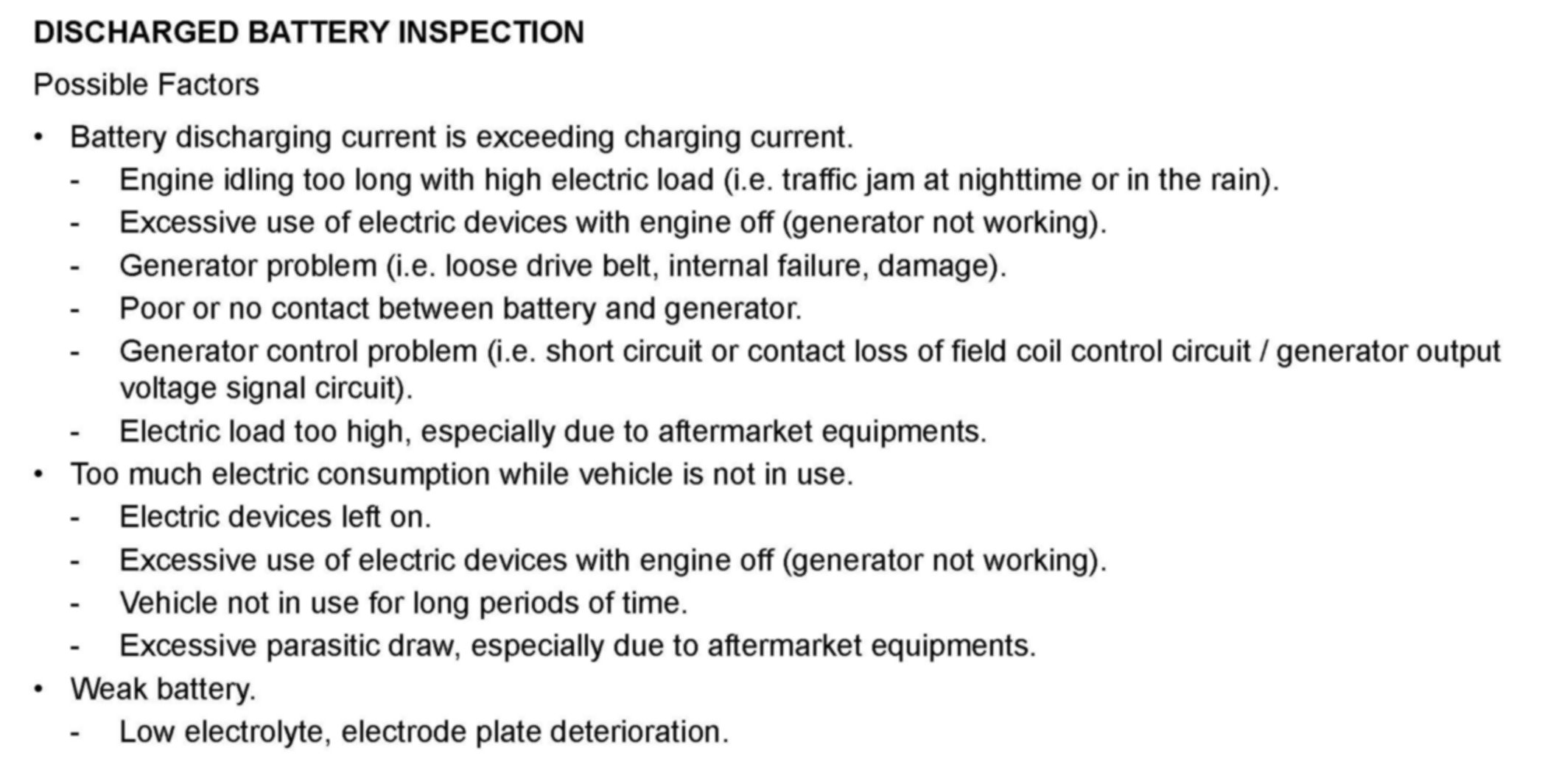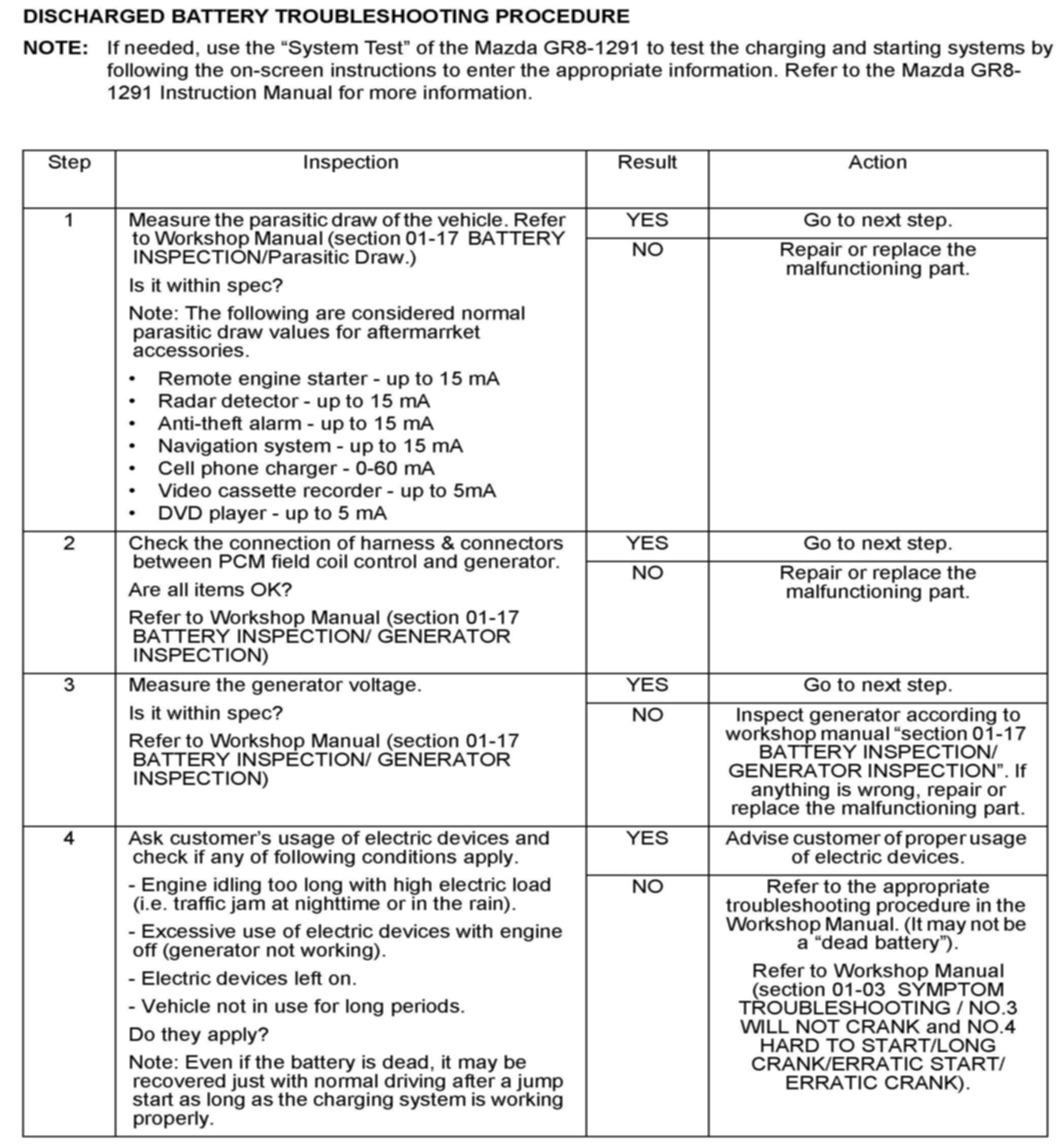 DISCHARGED BATTERY TROUBLESHOOTING PROCEDURE