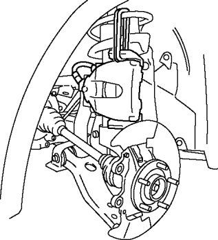 1. Remove the brake caliper component from the steering knuckle and suspend it out of the way using a cable.