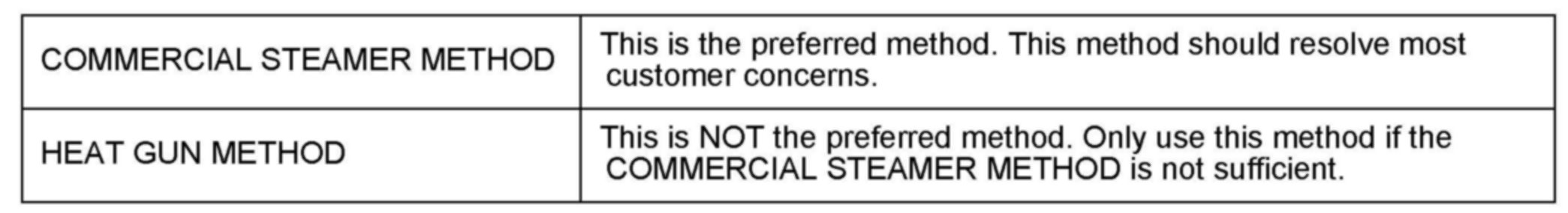 ^ Explain to the customer before performing the repair that the wrinkles may not be completely removed.