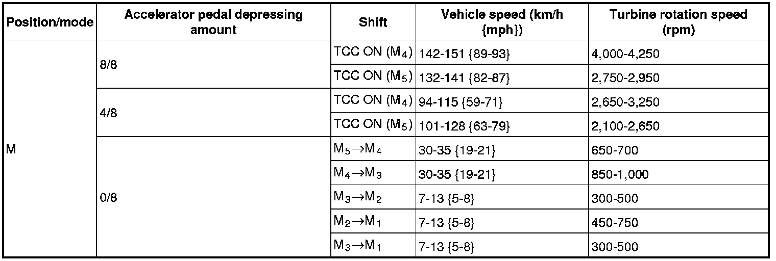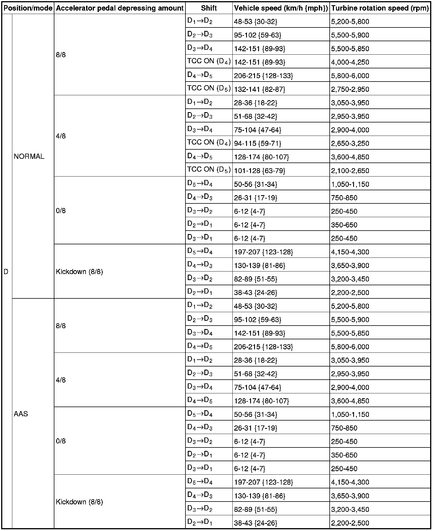 4. Inspect the shift point for the D position in normal mode.