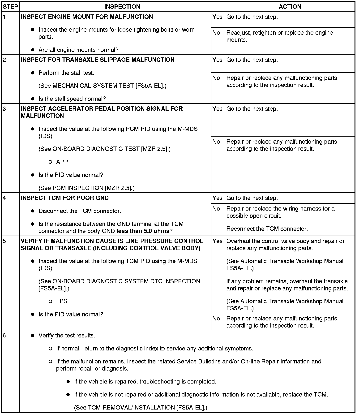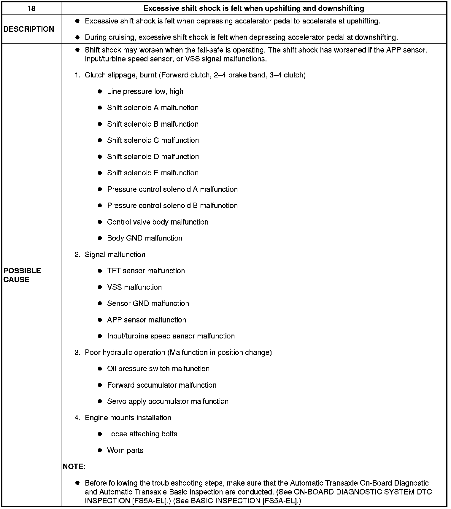 NO.18 EXCESSIVE SHIFT SHOCK IS FELT WHEN UPSHIFTING AND DOWNSHIFTING [FS5A-EL]
