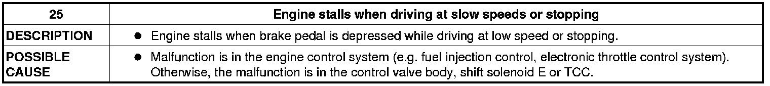 No. 25 Engine Stalls When Driving At Slow Speeds Or Stopping
