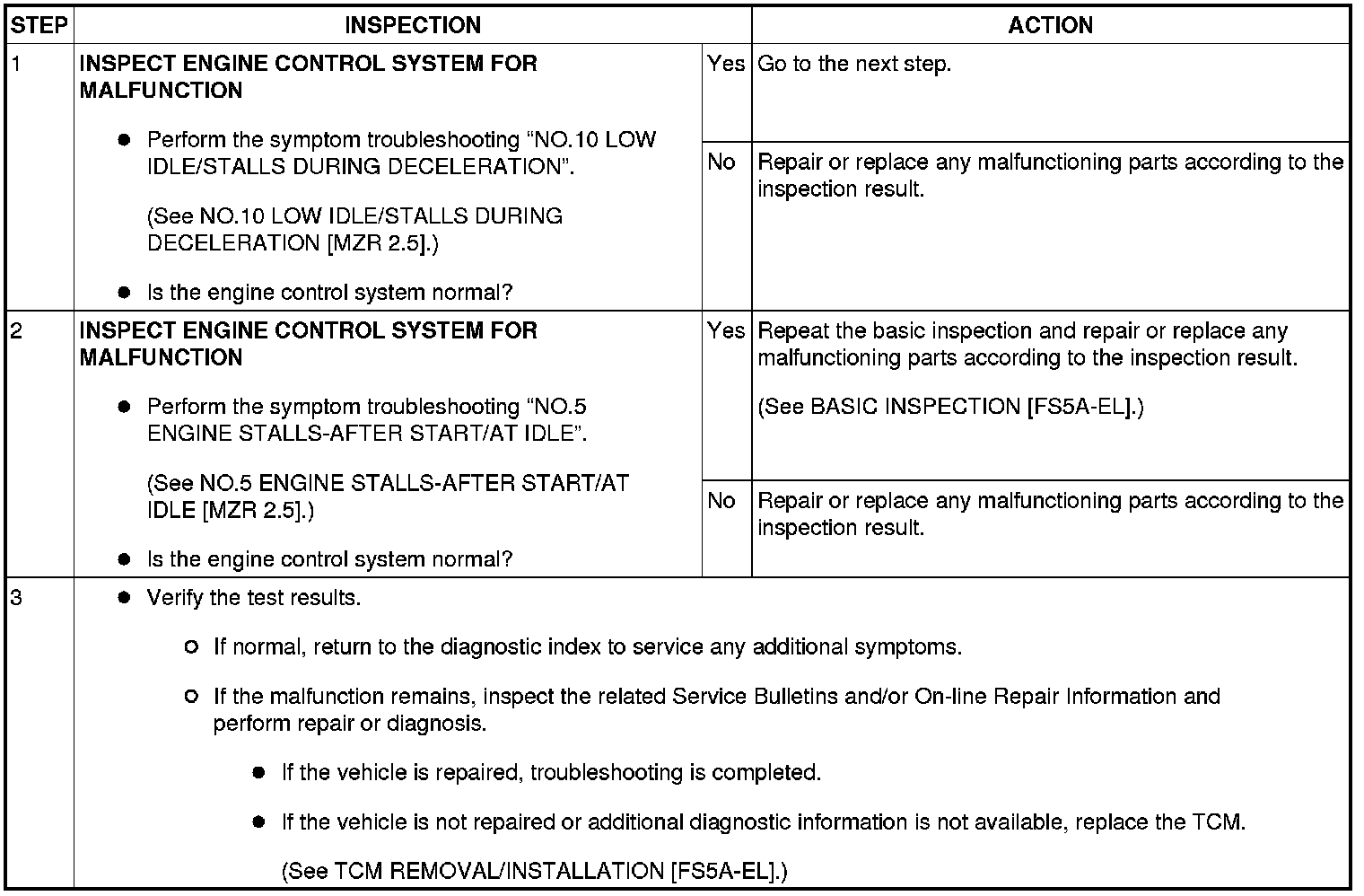 NO.25 ENGINE STALLS WHEN DRIVING AT SLOW SPEEDS OR STOPPING [FS5A-EL]