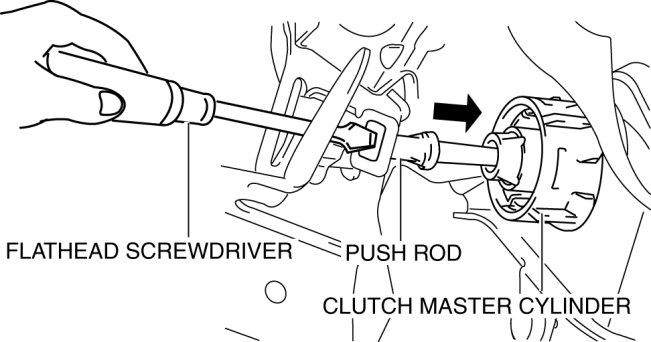 c. Disengage the tabs of the push rod and remove the clutch master cylinder using a flathead screwdriver.