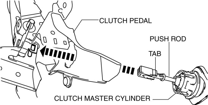 c. Engage the tabs of the push rod with the clutch pedal as shown in the figure.