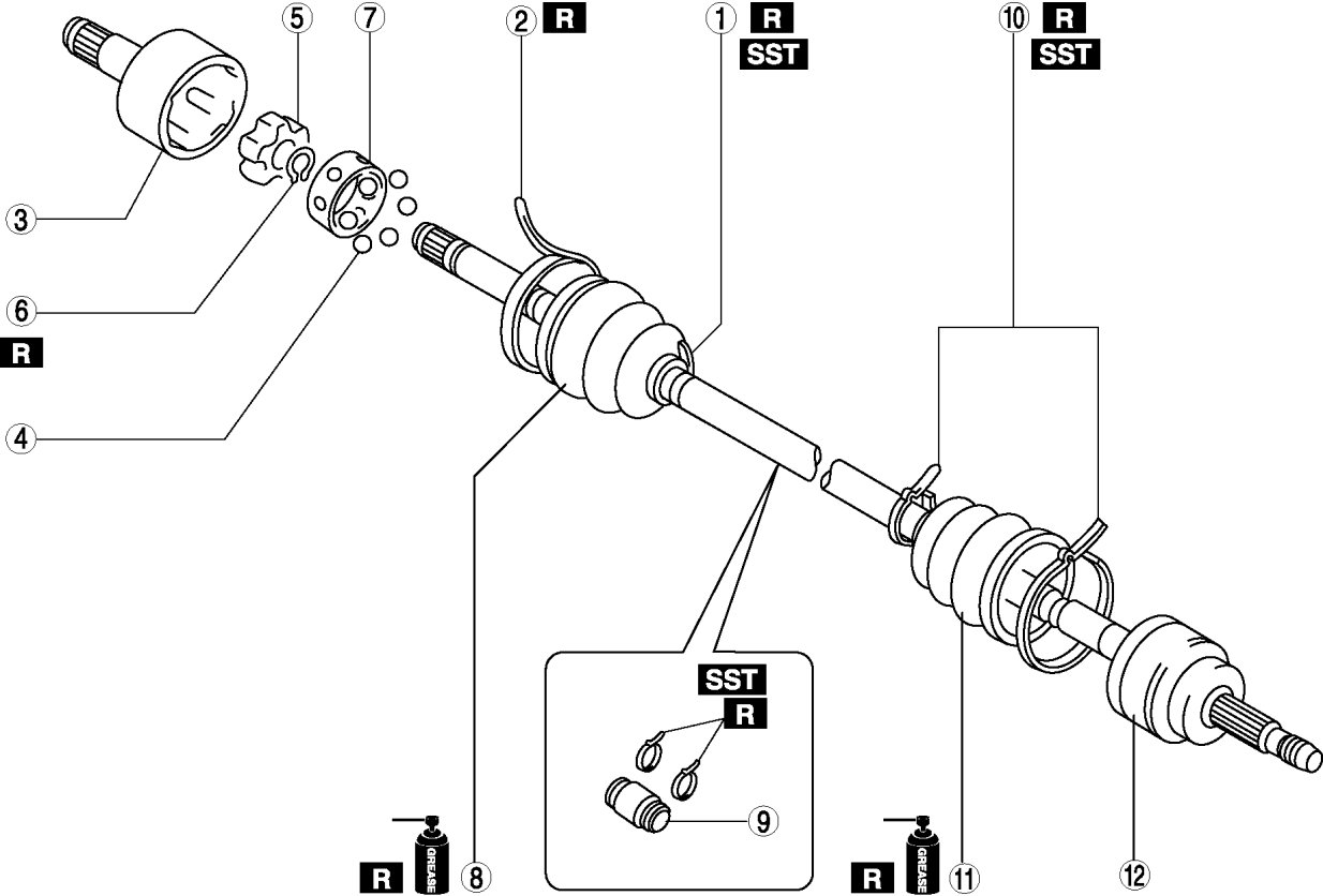- The wheel-side and transaxle-side boots are different.