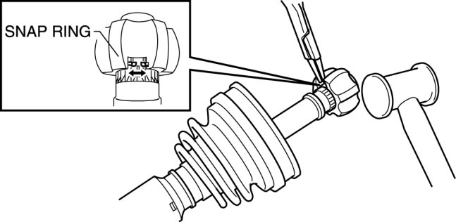 3. Tap the inner ring using a plastic hammer while spreading the snap ring, and disassemble the inner ring from the drive shaft.