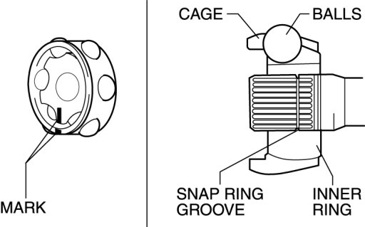Cage, Inner Ring, Balls, Snap Ring Assembly Note