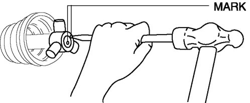 1. While aligning the marks on the shaft and the tripod joint, insert the tripod joint using a bar and a hammer.