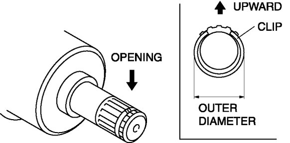 1. Install a new drive shaft clip to the clip groove at the end of the drive shaft with the clip opening facing upward.