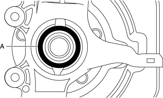 2. Apply grease (L2Y1 33247) to the wheel bearing inner race and drive shaft contact surface (Area A in figure).
