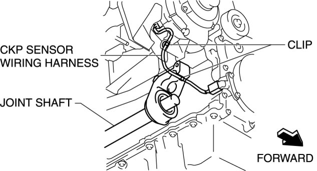 2. Disconnect the clips to set the CKP sensor wiring harness out of the way to prevent interference with the joint shaft.