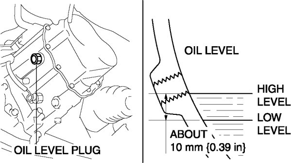 4. Verify that the manual transaxle oil is near the brim of the plug port.
