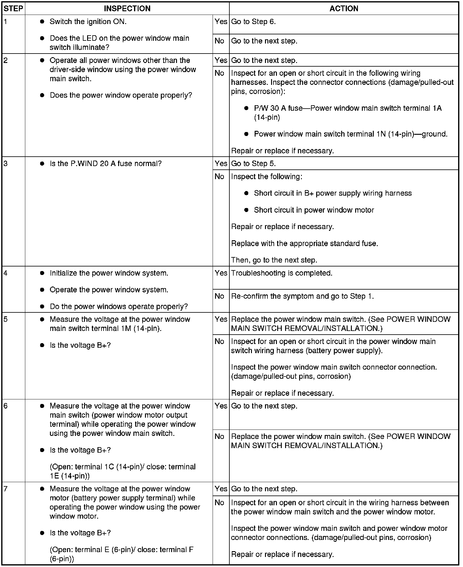 No.2 THE DRIVER-SIDE POWER WINDOW IS INOPERATIVE [POWER WINDOW SYSTEM]