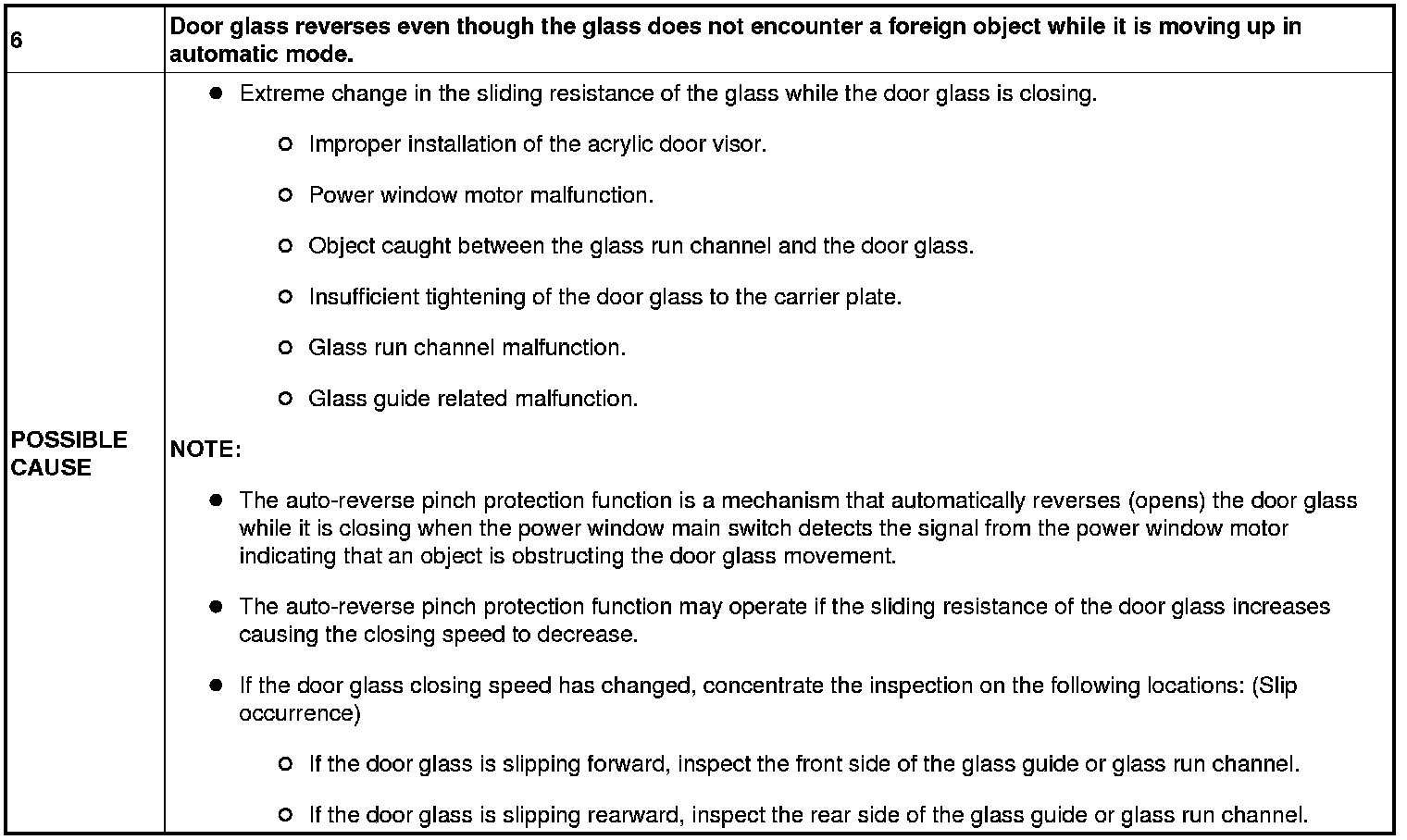 No.6 DOOR GLASS REVERSES EVEN THOUGH THE GLASS DOES NOT ENCOUNTER A FOREIGN OBJECT WHILE IT IS MOVING UP IN AUTOMATIC MODE [POWER WINDOW SYSTEM]