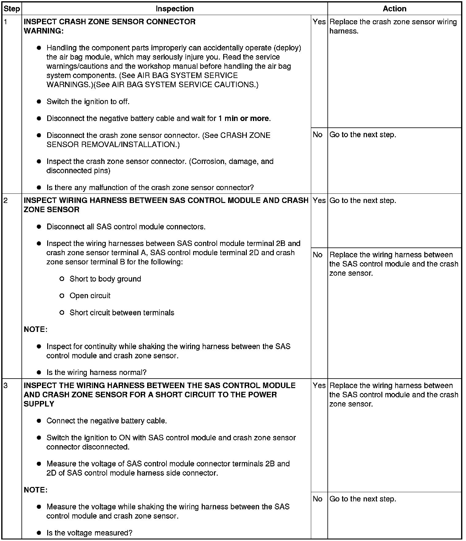 - Malfunction in the wiring harness between the crash zone sensor and SAS control module