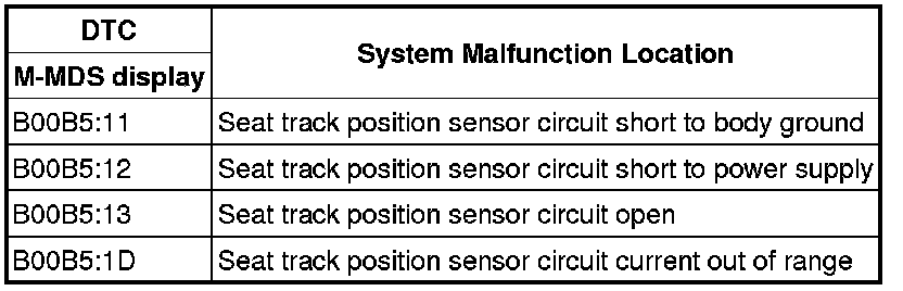 - Seat track position sensor malfunction