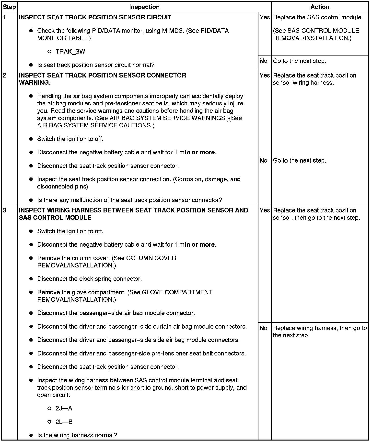 - Malfunction of connector between seat track position sensor and SAS control module