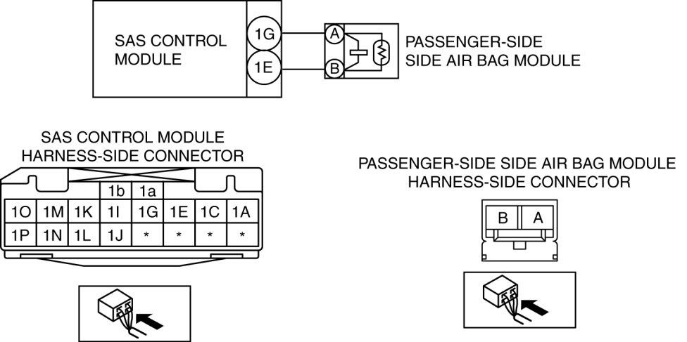 - Open or short circuit in the wiring harness between the passenger-side side air bag module and SAS control module