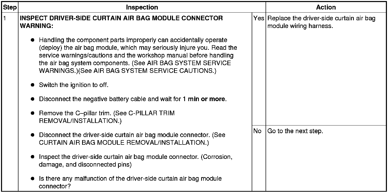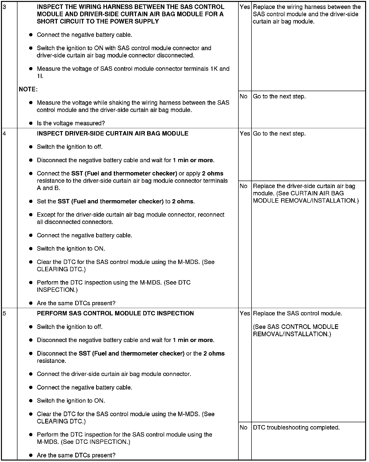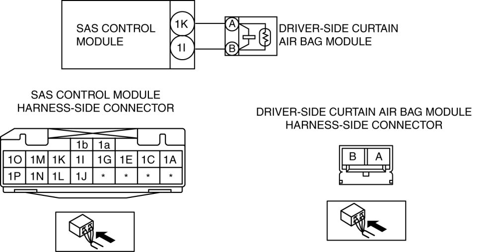 - Open or short circuit in the wiring harness between the driver-side curtain air bag module and SAS control module