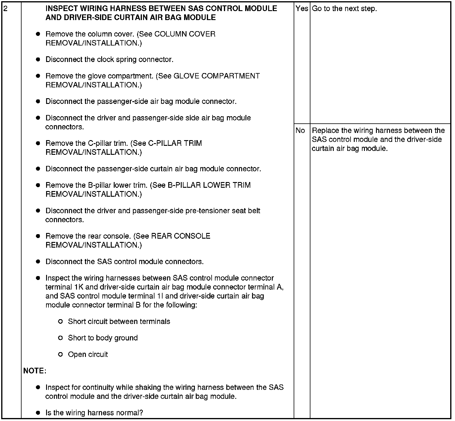 - Wiring harness between the driver-side curtain air bag module and SAS control module has a malfunction