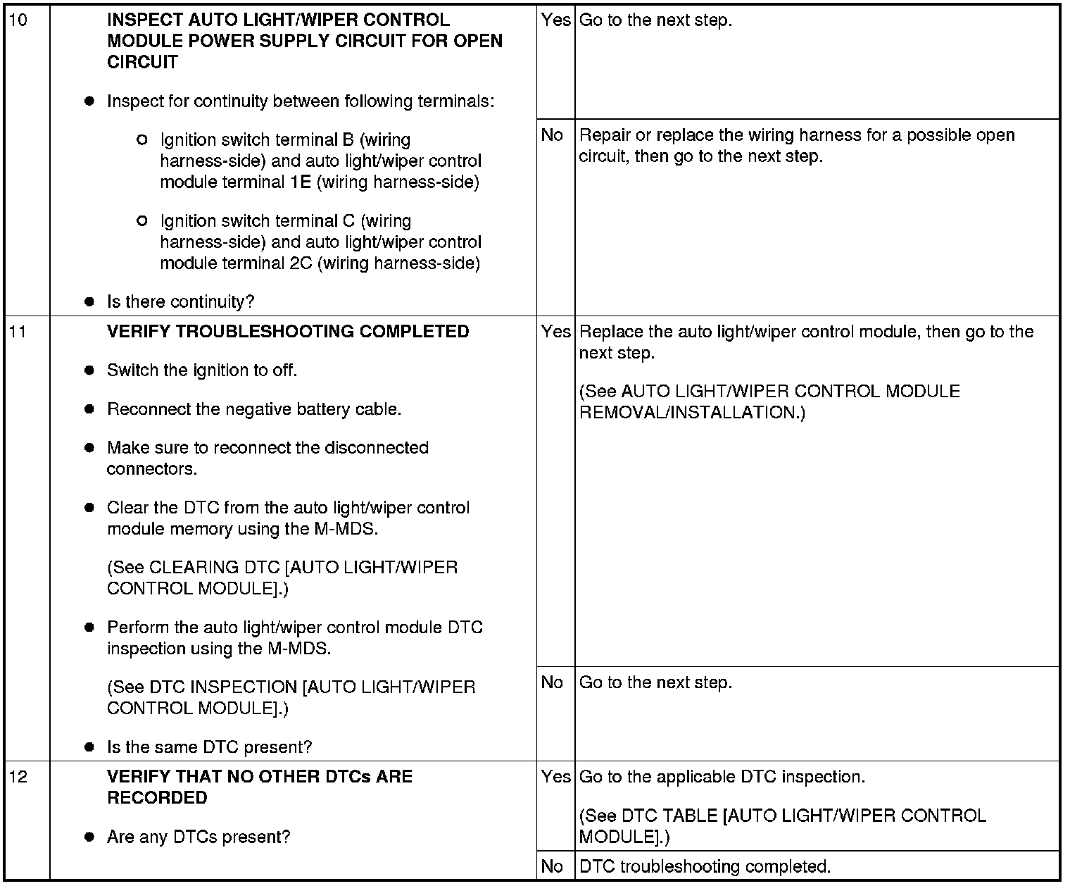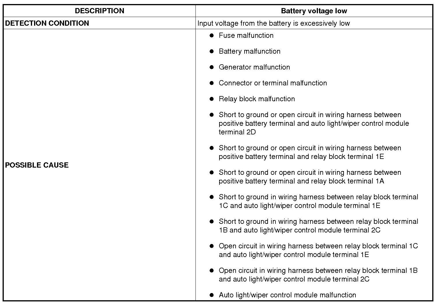 DTC B1318 [AUTO LIGHT/WIPER CONTROL MODULE]