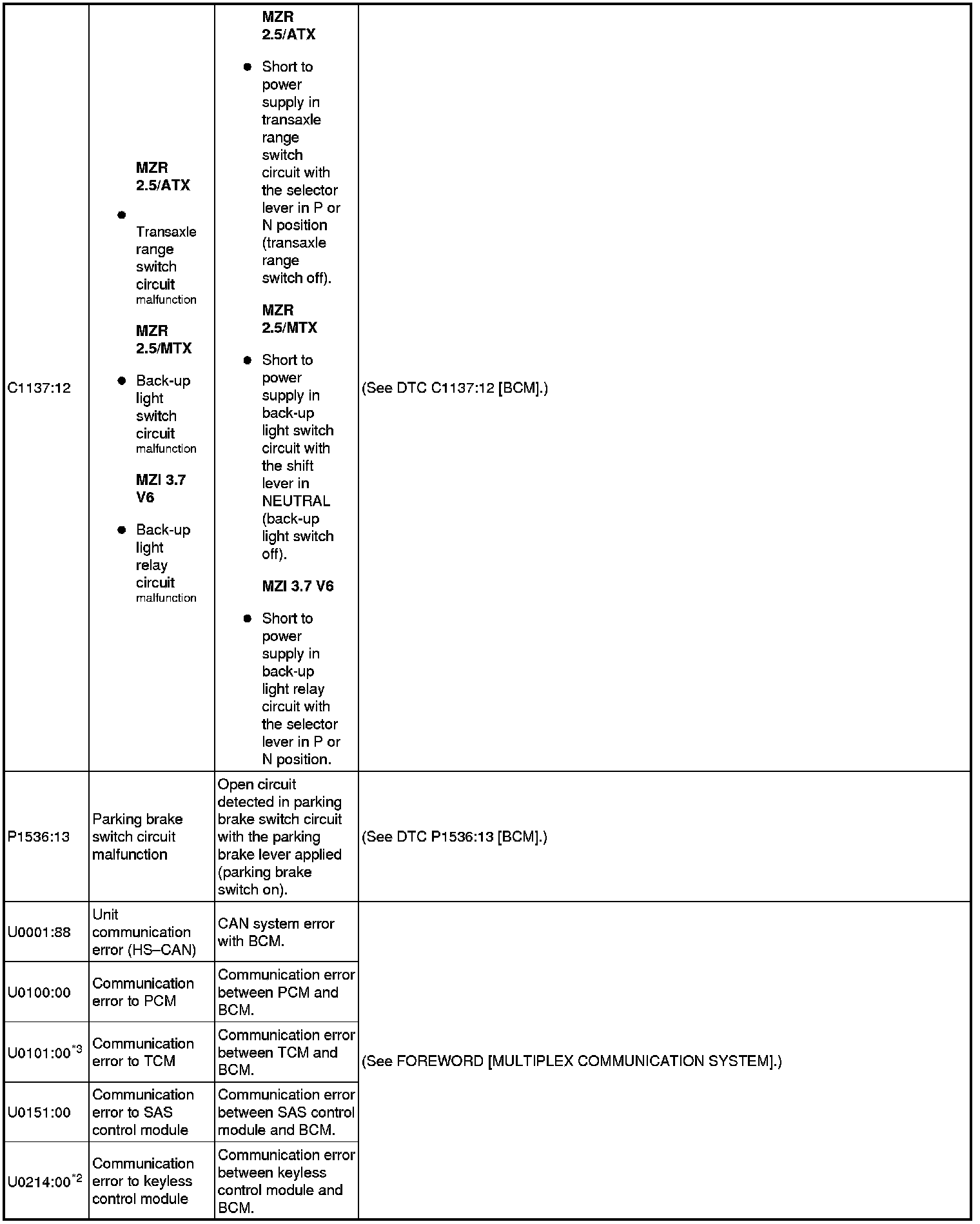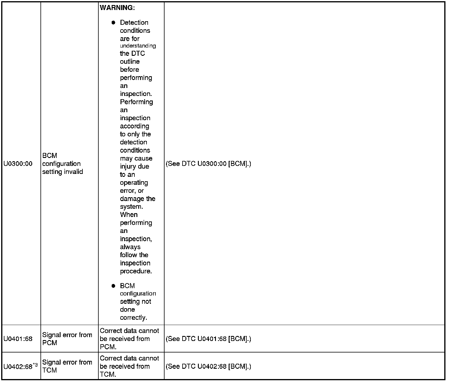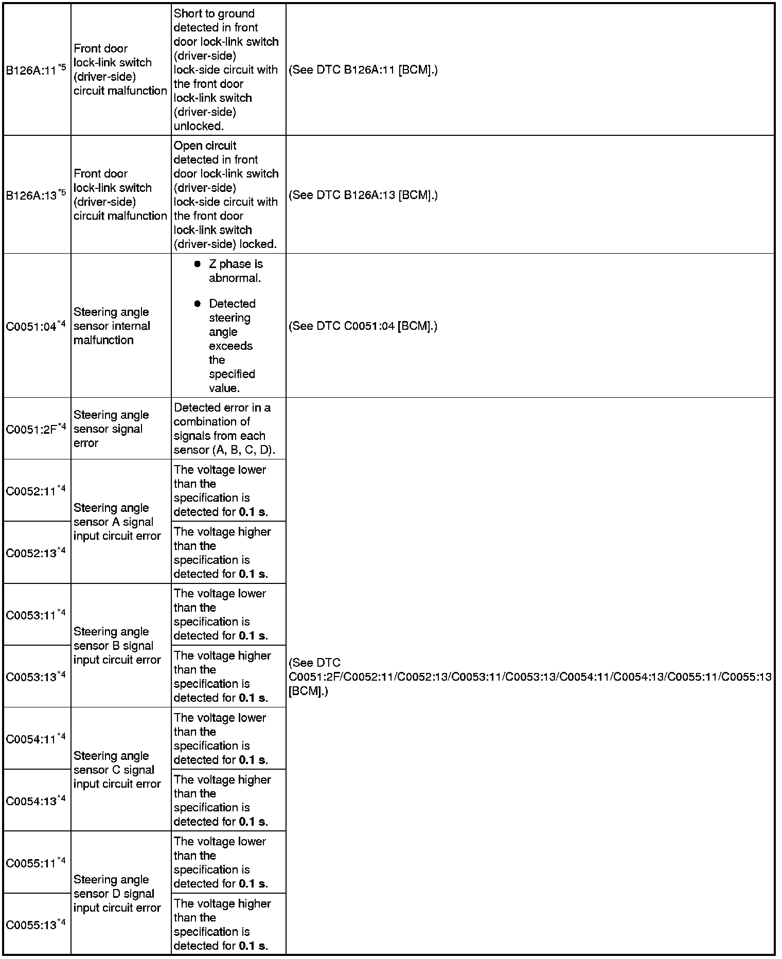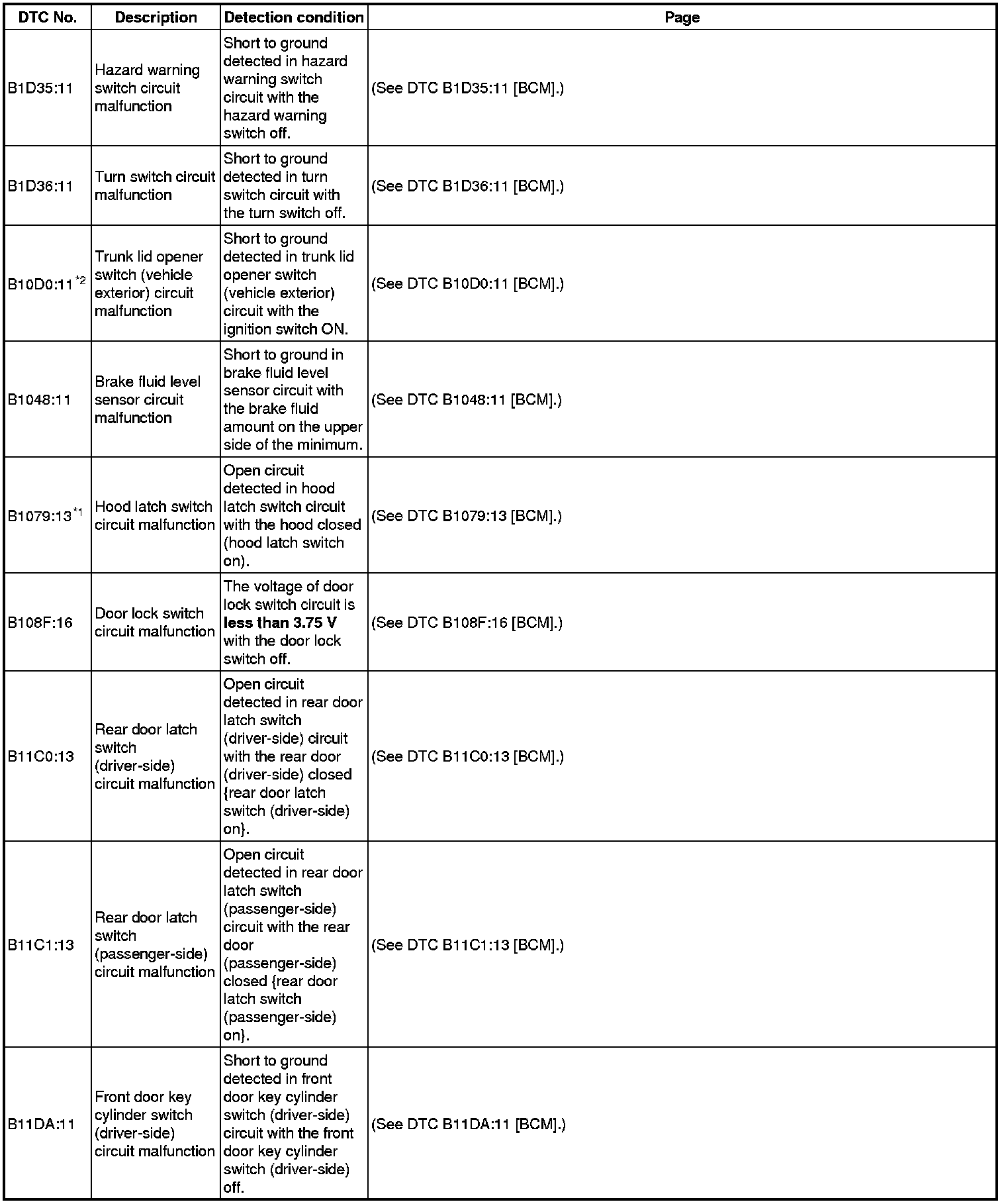 DTC TABLE [BCM]