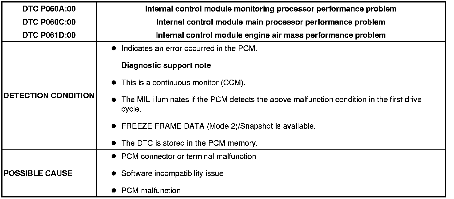 DTC P060A:00, P060C:00, P061D:00 [MZR 2.5]