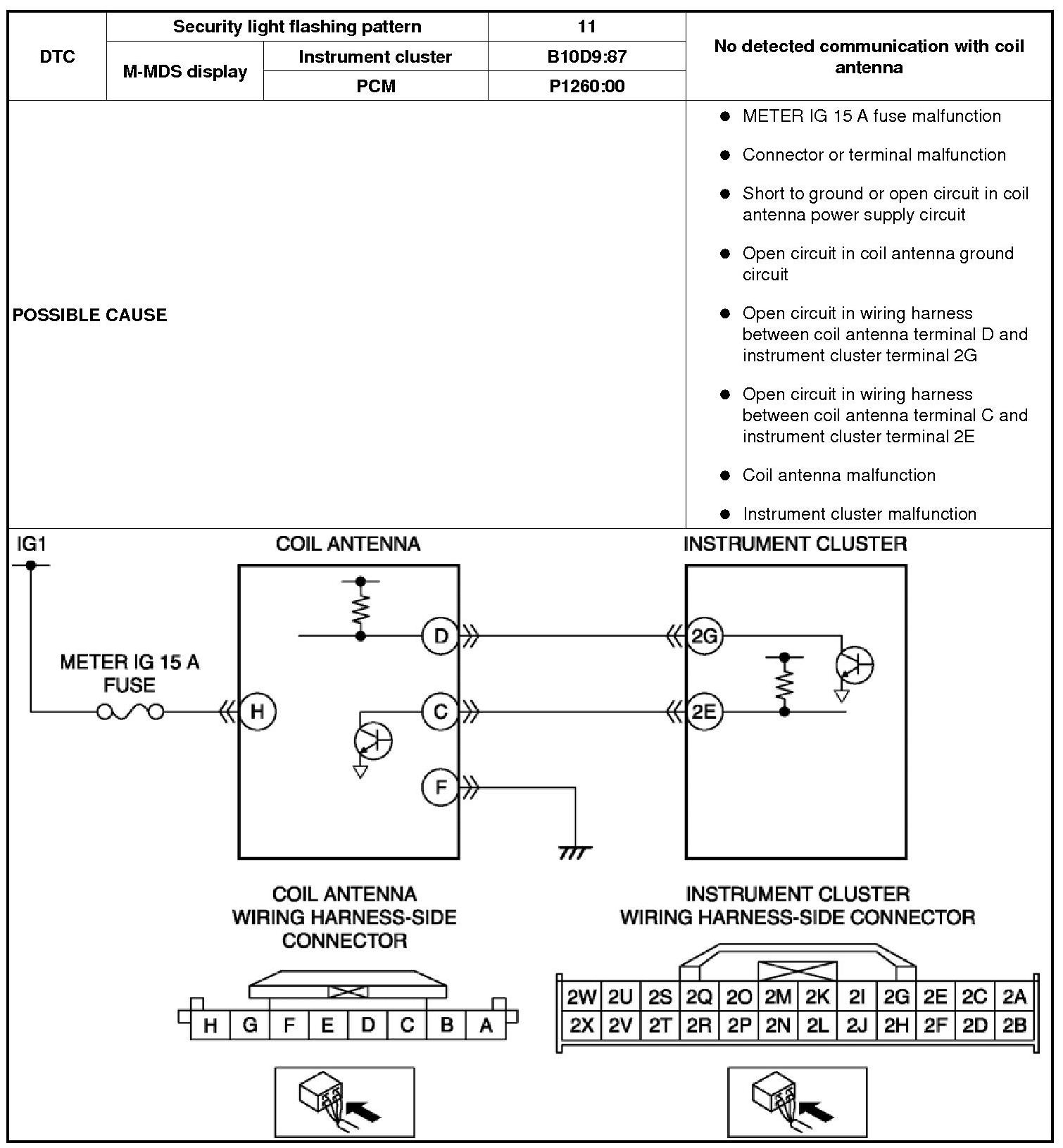 SECURITY LIGHT: 11, DTC: B10D9:87/P1260:00 [IMMOBILIZER SYSTEM (KEYLESS ENTRY SYSTEM)]