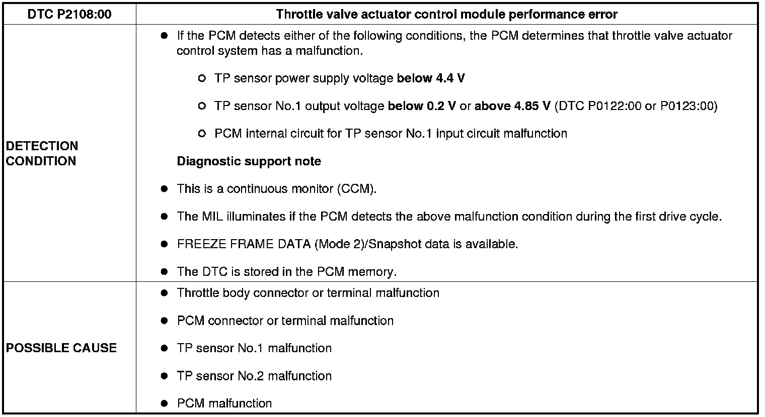 DTC P2108:00 [MZR 2.5]