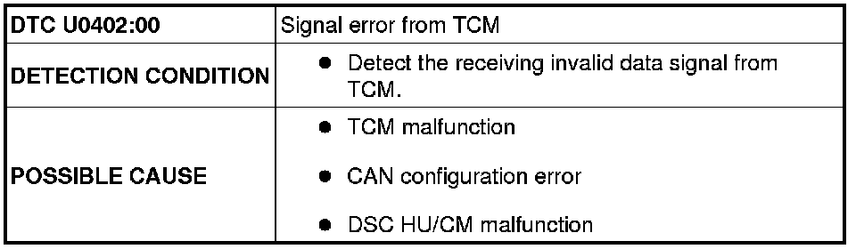 DTC U0402:00 [DYNAMIC STABILITY CONTROL (DSC)]