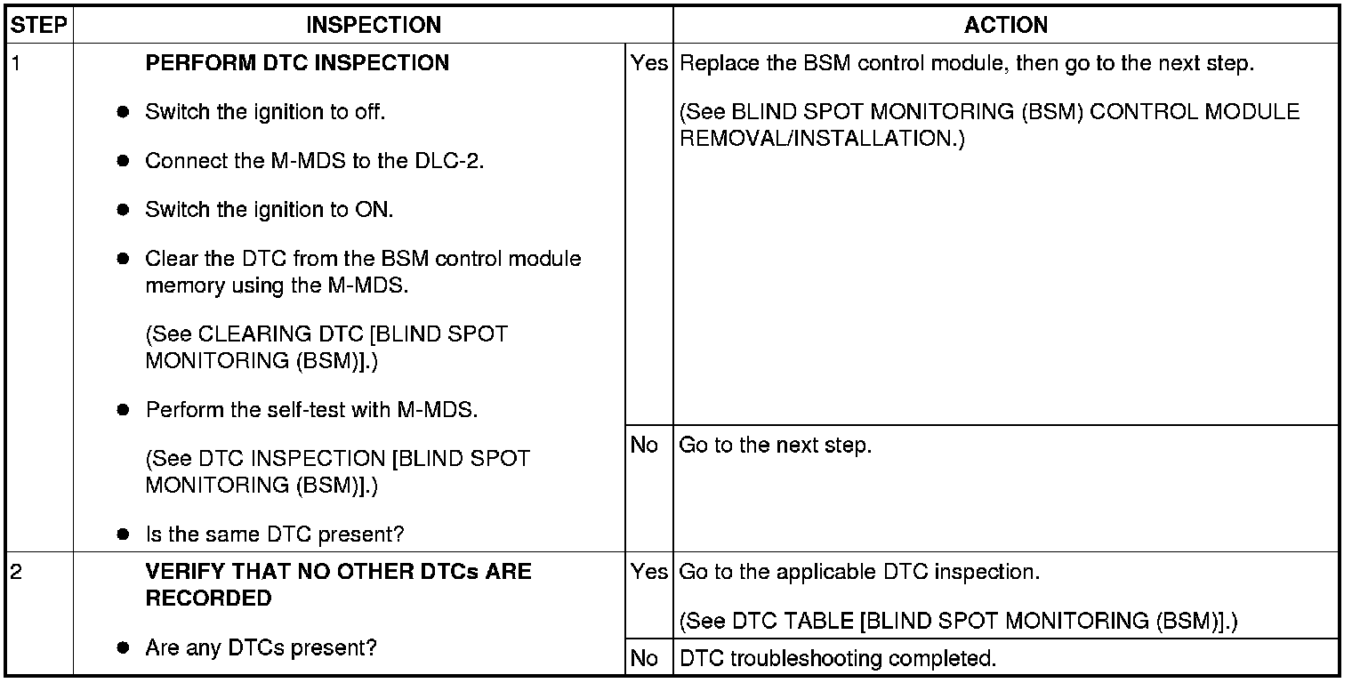 DTC U3000:01 [BLIND SPOT MONITORING (BSM)]