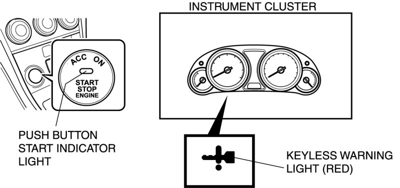 - When the system enters the fail-safe function, the keyless warning light and the push button start indicator light illuminate as follows: