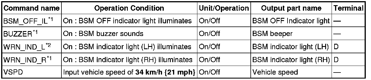 ACTIVE COMMAND MODES TABLE [BLIND SPOT MONITORING (BSM)]