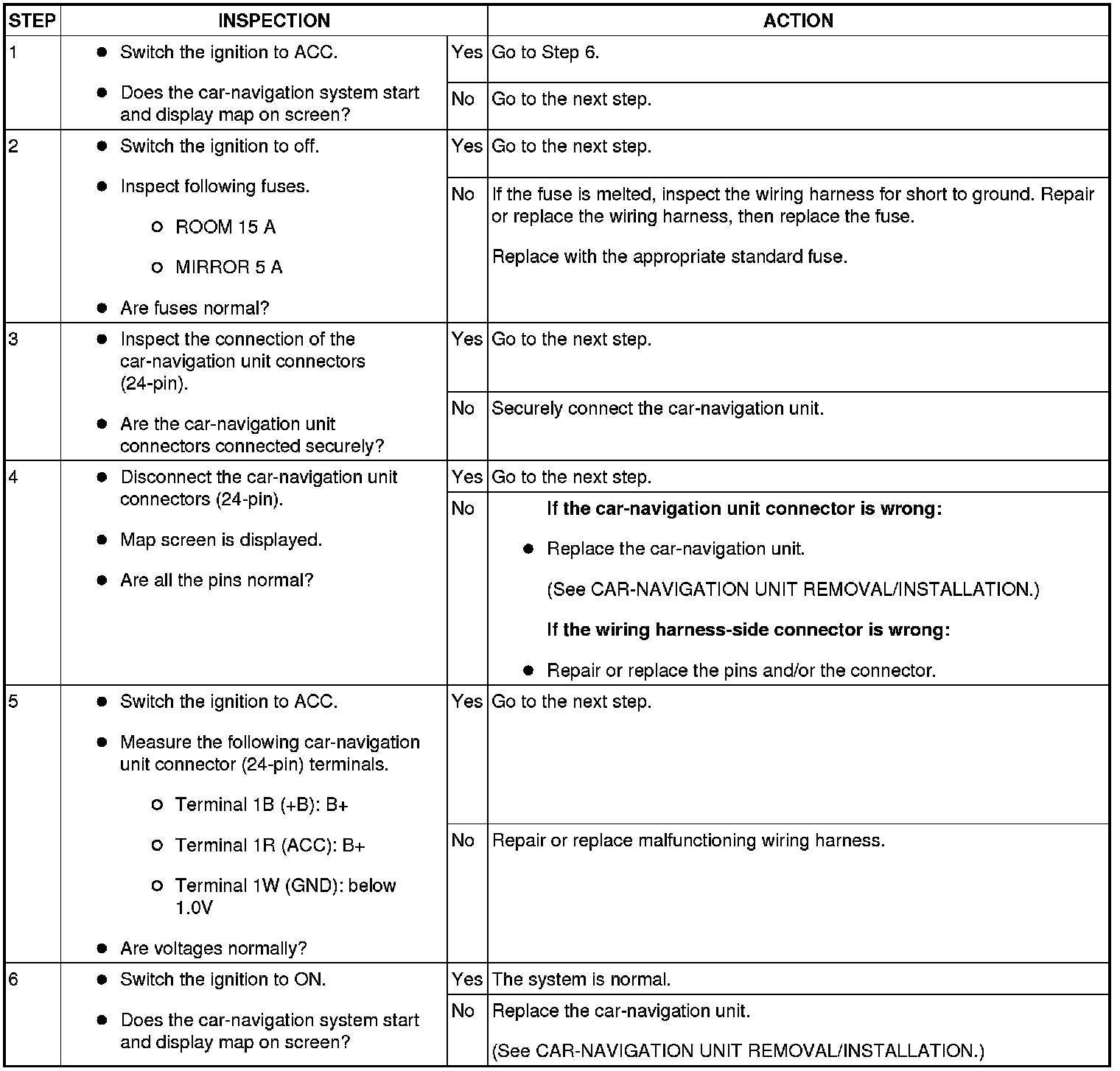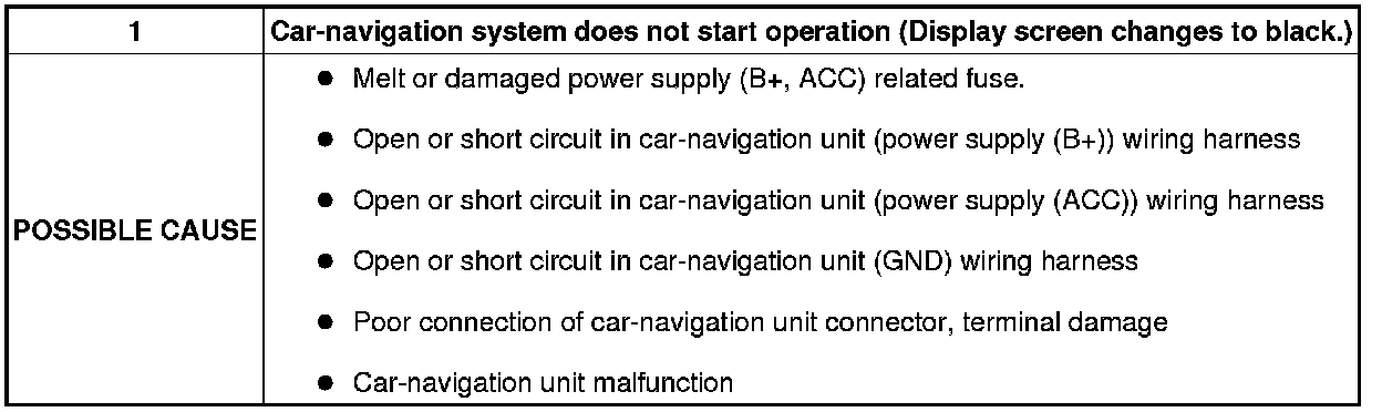 No. 1 Car-Navigation System Does Not Start Operation (Display Changes To Back.)