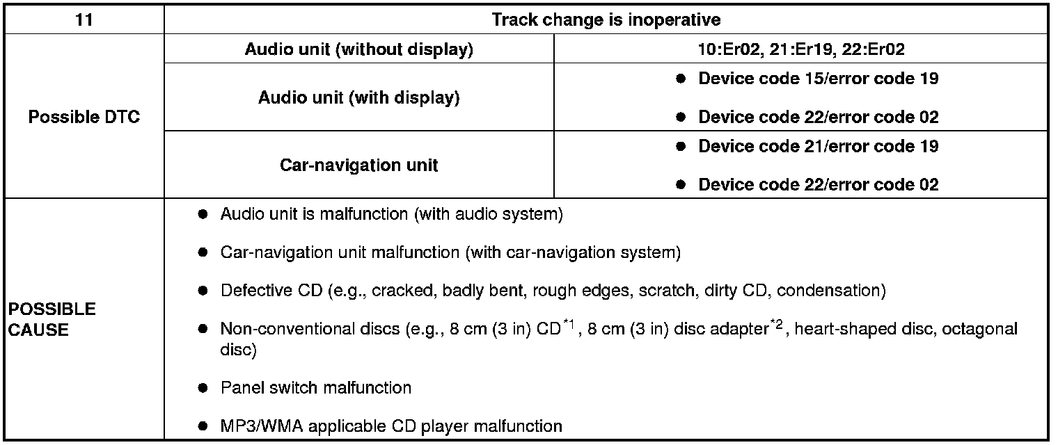 NO.11 TRACK CHANGE IS INOPERATIVE [CD PLAYER/CHANGER]