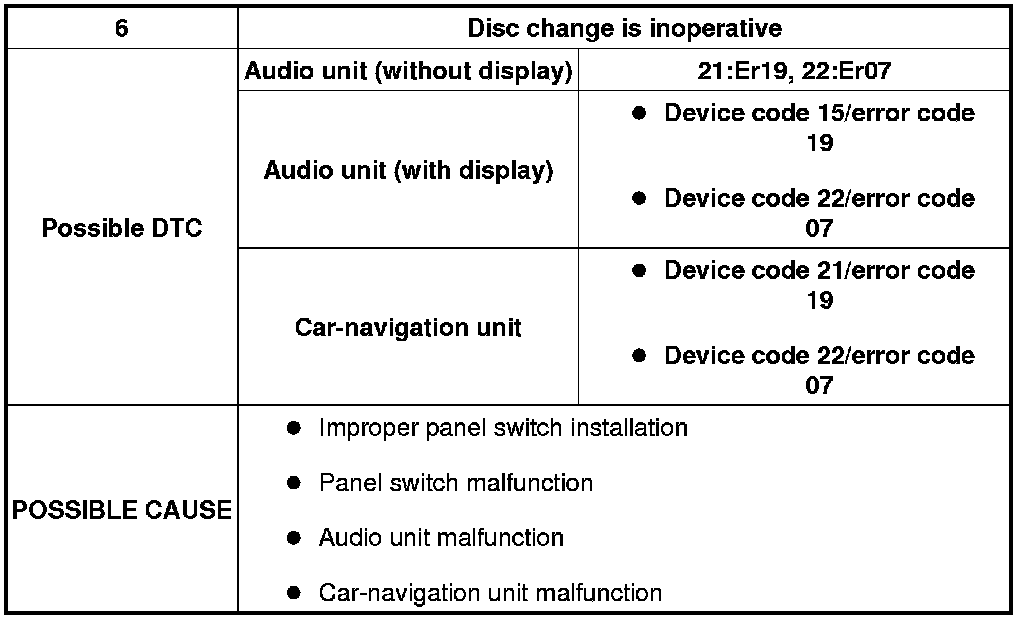 NO.6 DISC CHANGE IS INOPERATIVE [CD PLAYER/CHANGER]